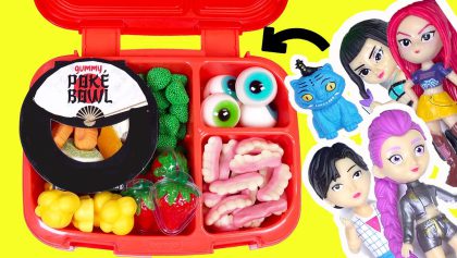 Join the KPOP Demon Hunters for a fun school lunch packing session featuring Rumi, Zoey, Mira, and Jinu dolls. This video follows the...